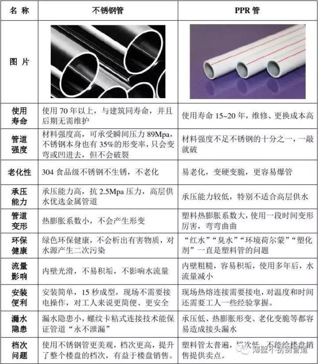 以下讓我們從幾個方面對5大類常用的給水管道材料不銹鋼管、銅管、鍍鋅管、復合管(包括鋼塑、鋁塑、銅塑和不銹鋼復合管等)及塑料管(包括PE、PPR、PVC等)進行比較。
